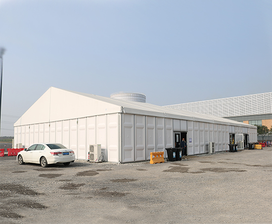 华烨篷房生产厂家主要为上海国际旅游度假区提供一款20×35米的仓库篷房,客户主要用于储存物品及办公使用,边墙采用ABS硬体墙外观又比较美观,具有绝缘、韧性好、耐磨、无毒无味的作用,