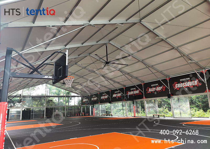 篮球场篷房可严格按照正规球场尺寸进行搭建,采用模块式的搭建方法,速度快,同时相对于传统建筑,篷房篮球馆造价是十分低的,无需复杂的审批手续,可长期使用寿命可达30-50年,厂家可提供多样化的造型结构,还可根据具体的需求定制来满足个性化的需求。